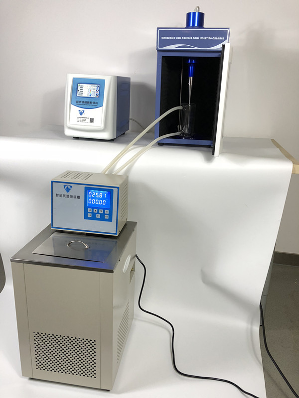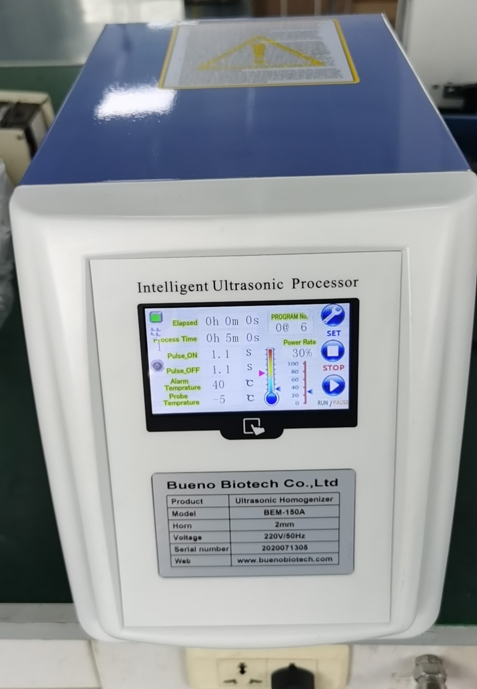BuenoBiotech helped customer in Netherland solve the problem the cooling to the Probe Sonicator. When the ultarsonic probe sonicator keeps processing the nano-material for long time , the liquid's temperature will rise. To better protect the liquid material, Buenobiotech provided the system to cool the liquid.